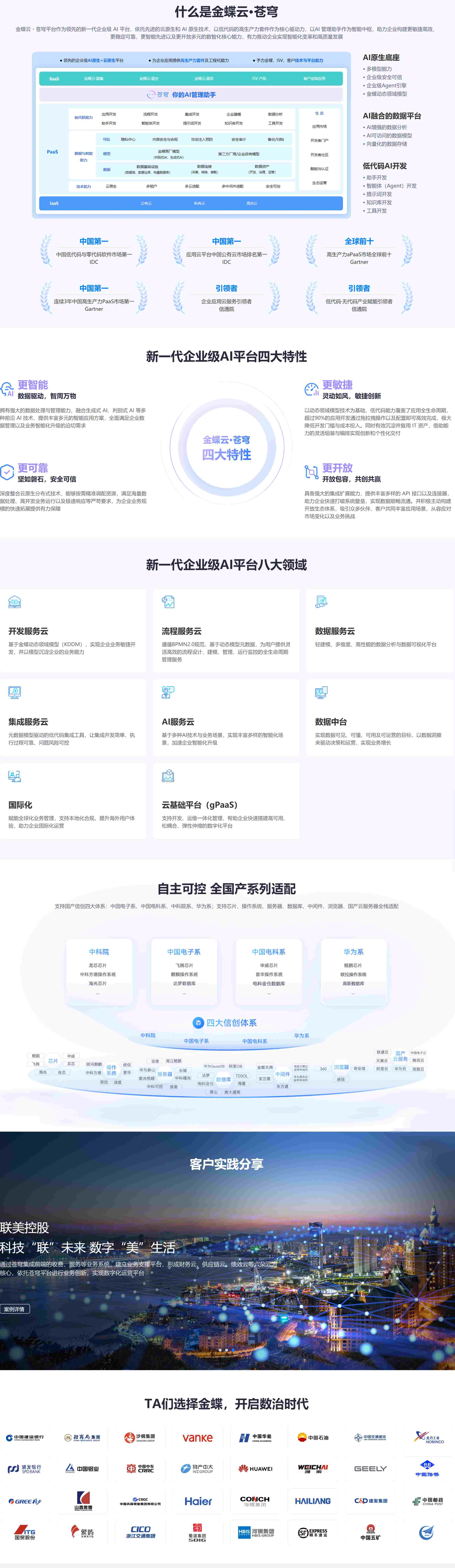金蝶云・苍穹平台作为领先的新一代企业级 AI 平台,依托先进的云原生和 AI 原生技术,以低代码的高生产力套件作为核心驱动力,以AI 管理助手作为智能中枢,助力企业构建更敏捷高效、更稳定可靠、更智能先进以及更开放多元的数智化核心能力,有力推动企业实现智能化变革和高质量发展