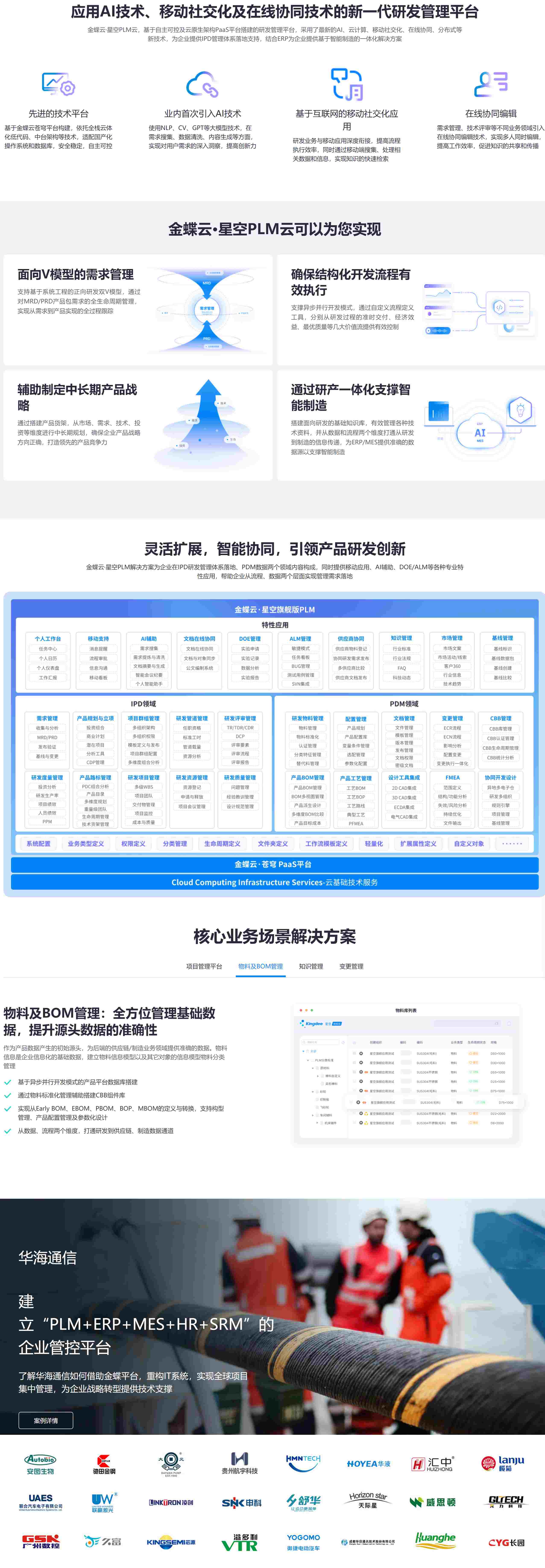 金蝶云·星空PLM云,基于自主可控及云原生架构PaaS平台搭建的研发管理平台,采用了最新的AI、云计算、移动社交化、在线协同、分布式等新技术,为企业提供IPD管理体系落地支持,结合ERP为企业提供基于智能制造的一体化解决方案